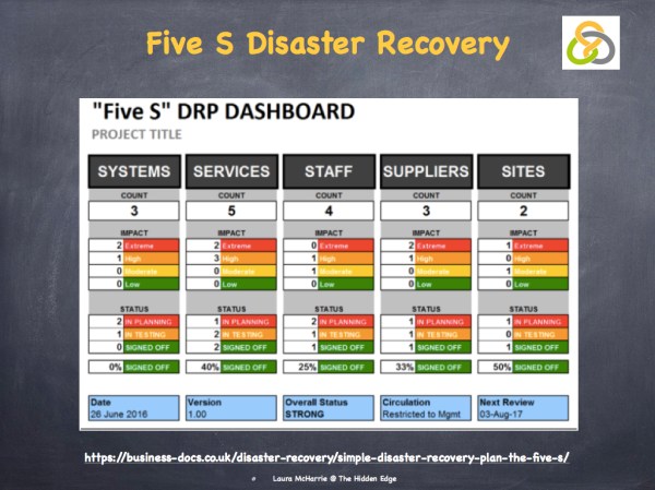 3. Use Business-Docs 5 S Disaster Recovery to think through the sort of scenarios that are most likely to have an impact on your business continuity